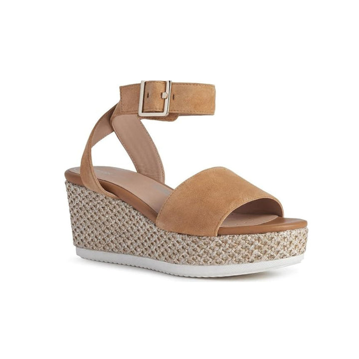 Sandalo donna della geox modello zeppa nella colorazione cognac. Sandalo comodo adatto per ogni tua esigenza.