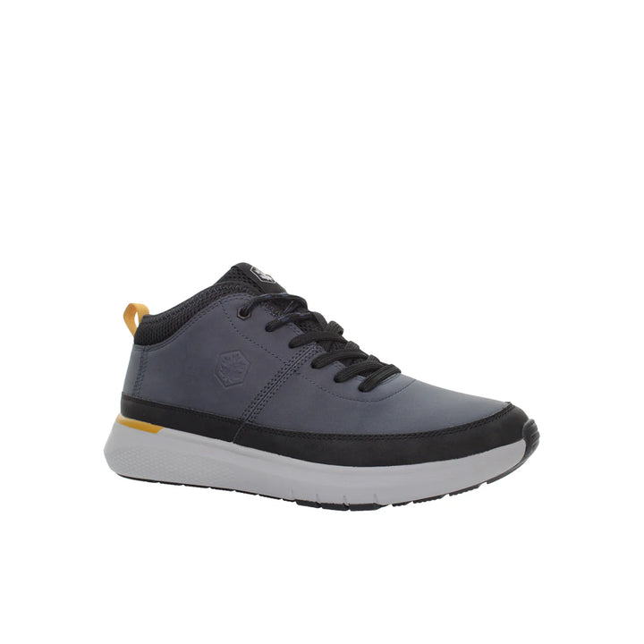 Il modello LUMBERJACK Neil è uno scarponcino dallo stile urban-sportivo, ideale per chi cerca praticità e design contemporaneo. Realizzato in materiale resistente color navy blue con dettagli neri e gialli a contrasto, si distingue per il look dinamico e di tendenza.