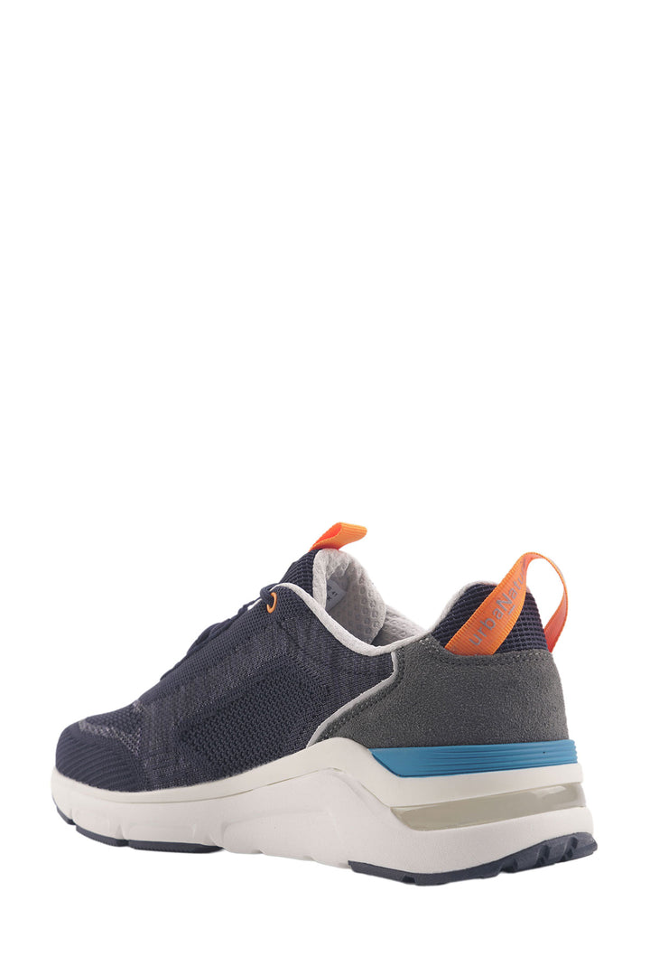Sneakers in tessuto con inserti in camoscio, suola in gomma, fondo antiscivolo, con lacci in cotone, interno in tessuto.