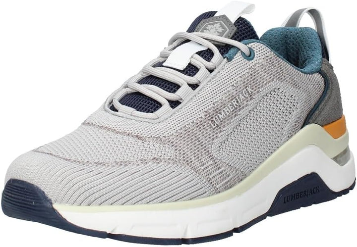 Sneakers in tessuto con inserti in camoscio, suola in gomma, fondo antiscivolo, con lacci in cotone, interno in tessuto.
