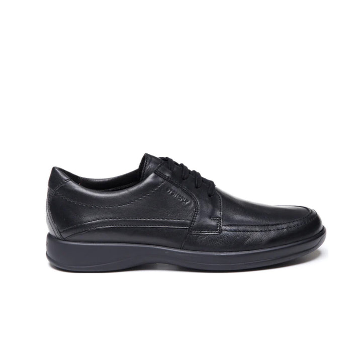 Scarpa stringata derby da uomo in pelle nappa nera con vestibilità extra comfort. Un modello dalle linee classiche ed essenziali, che unisce raffinatezza ed eleganza all'insostituibile comodità che distingue le calzature Stonefly. Il suo design semplice e sobrio rende questa calzatura allacciata estremamente versatile e adatta sia per contesti formali che informali. La tecnologia Blusoft® supporta la tua camminata garantendo massimo comfort e ammortizzazione. Suola in PU, altezza tacco (cm): 3.